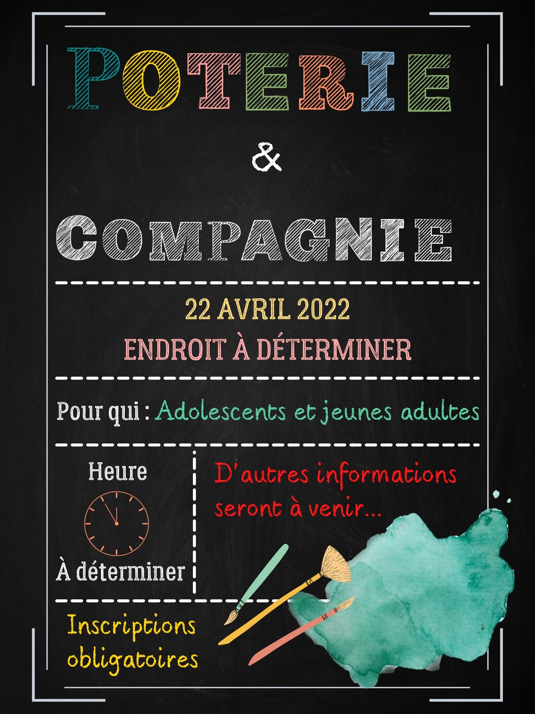 Plus d’informations concernant l’endroit et l’heure vous seront bientôt partagées.